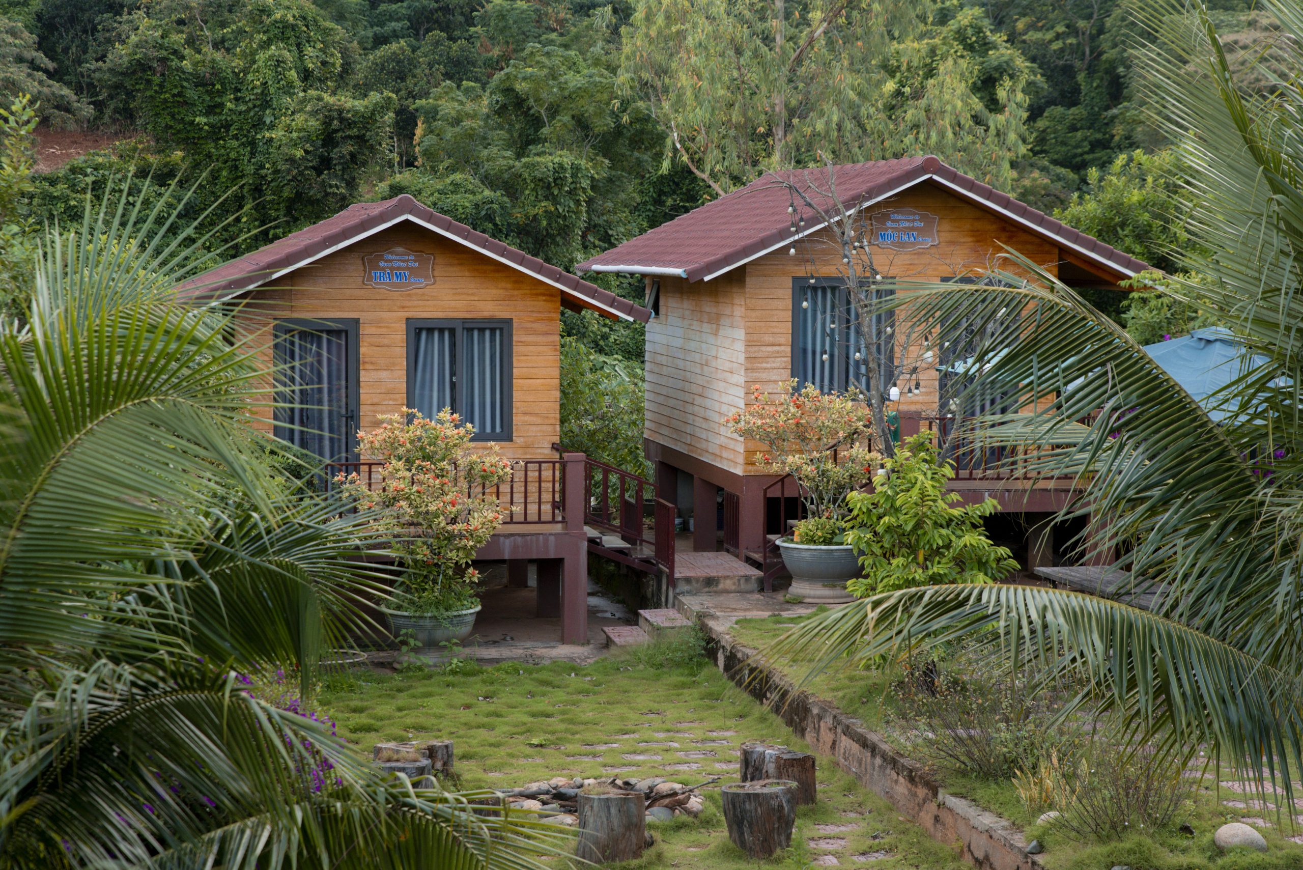 Vườn Nhiệt Đới Farm Stay gồm 4 căn: Trà My, Mộc Lan, Hoàng Kim, Anh Đào và 1 căn phòng lớn: CENTRAL home. Mỗi căn có phòng ngủ lớn, giường đơn kích thước 1m8x2m, điều hòa, máy nước nóng, wifi, ấm siêu tốc, WC riêng. Phù hợp cho 2 người lớn, rất lý tưởng cho gia đình nhỏ hoặc nhóm bạn muốn không gian riêng tư