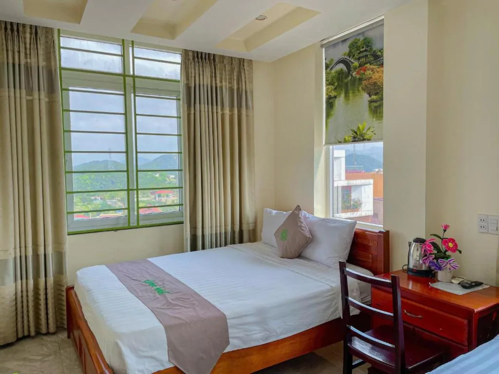 Phòng rộng 20m² với hai giường đôi 1m4 êm ái, phù hợp cho 4 người, là lựa chọn lý tưởng cho gia đình hoặc nhóm bạn muốn tận hưởng chuyến đi với chi phí hợp lý.