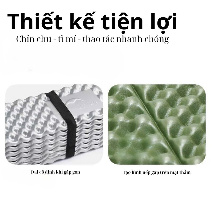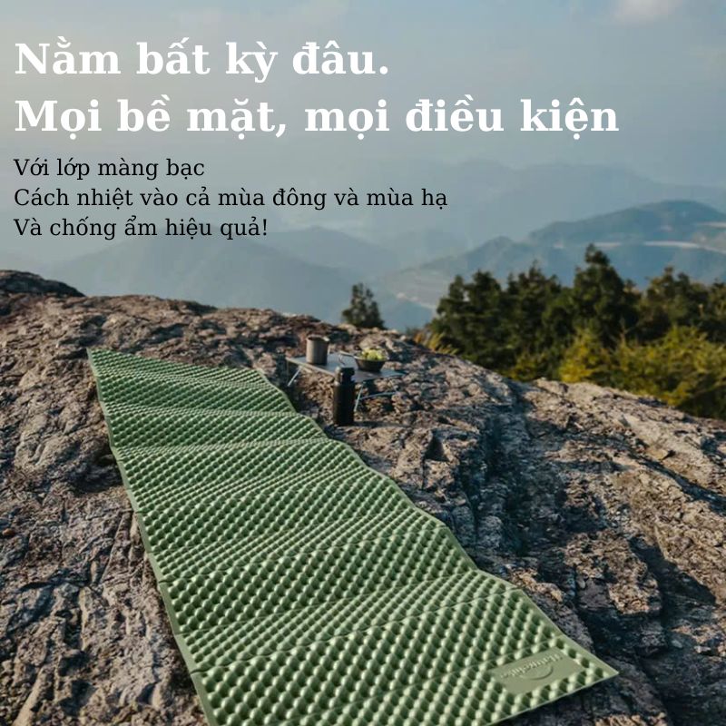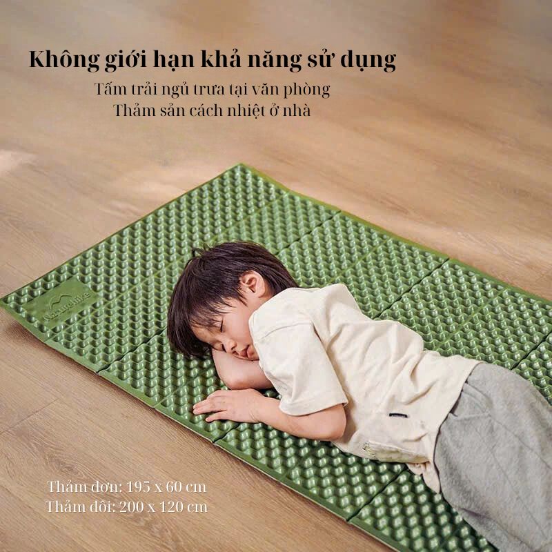 Mẫu đệm xốp đơn Naturehike CNK2450WS044 sử dụng chất liệu xốp IXPE siêu êm, kết hợp màng nhôm chống ẩm – cách nhiệt – chống phai màu. Phù hợp dùng cho lều trại, võng, du lịch dài ngày hoặc setup ngủ ngoài trời.