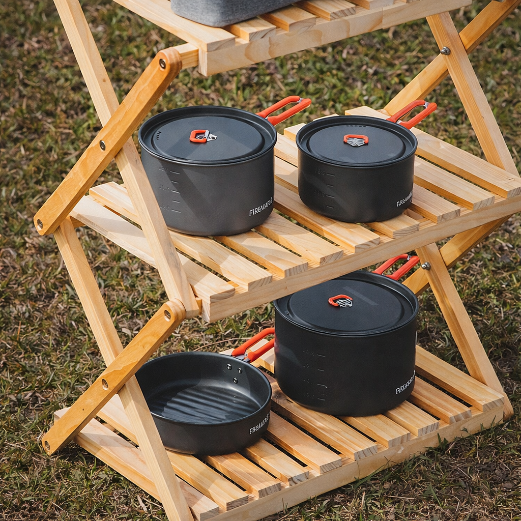 Thuê kệ gỗ camping Khe Sanh giúp sắp xếp đồ dùng gọn gàng khi cắm trại, picnic hoặc setup glamping. Mẫu kệ gỗ 3 tầng xếp gọn thiết kế thông minh, chắc chắn và dễ mang theo trong mọi chuyến đi.