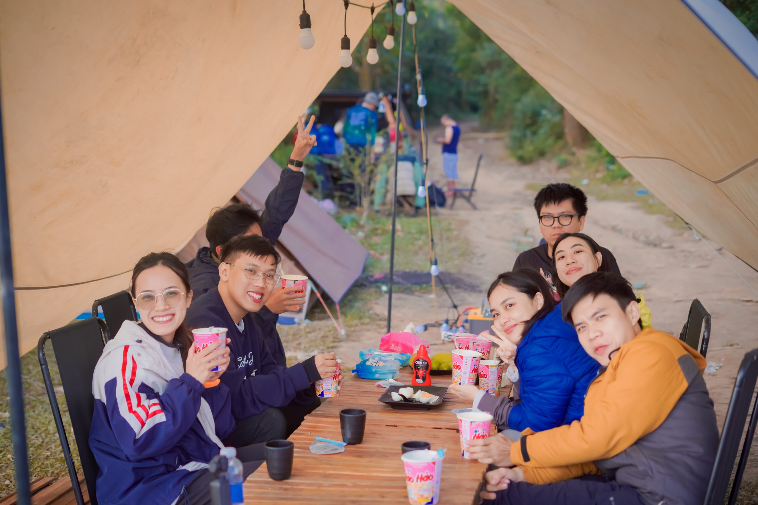 Khách hàng có thể cùng tham gia set-up ở mức vừa phải để cảm nhận đúng tinh thần camping, trong khi đội hậu cần hỗ trợ các phần nặng hơn.